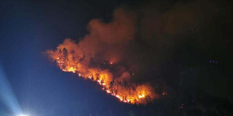Incendiul a izbucnit duminică, în jurul orei 15,00, şi se manifestă pe aproximativ 12 hectare la litieră, cioate şi doborâturi, într-o pădure aflată sub administrarea Ocolului Silvic Privat Oituz. Pădurea are circa 80% pin, 15% gorun şi 5% fag.