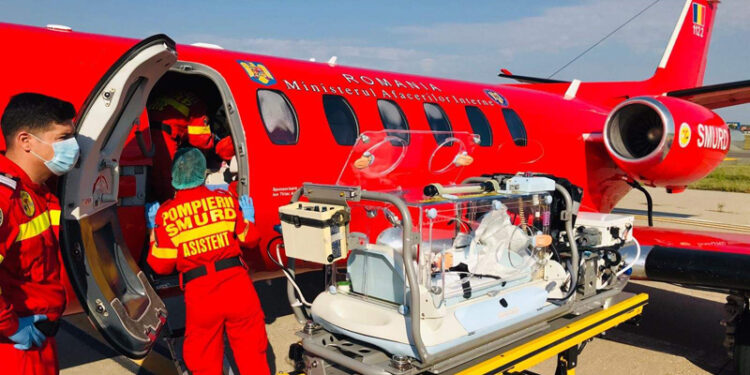 Medicii botoșăneni au solicitat transferul copilului la București iar Sâmbătă dimineață a fost trimis cu avionul SMURD care l-a preluat de pe aeroportul Suceava.