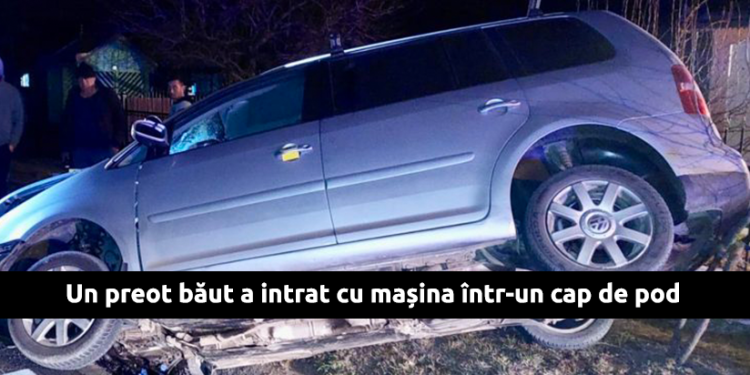 VIDEO: Accident grav în Botoșani; Un preot băut a intrat cu mașina într-un cap de pod
