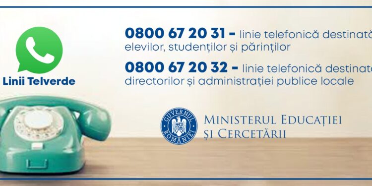 „O linie Telverde – 0800 67 20 31 – va fi pusă la dispoziția elevilor, studenților și părinților, în vederea obținerii de informații privind reluarea/desfășurarea procesului instructiv-educativ, în timp ce a doua linie Telverde – 0800 67 20 32 – va fi destinată reprezentanților unităților de învățământ preuniversitar de stat și administrației publice locale, cu scopul de a oferi consultanță în materie de accesare a fondurilor europene prevăzute prin OUG nr. 144/2020”, a anunțat Ministerul Educației și Cercetării.