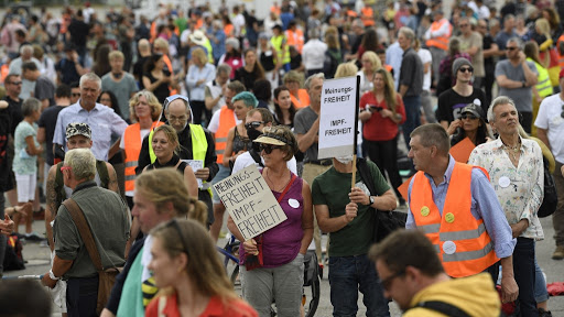 Mii de persoane au ieşit în stradă weekendul trecut în oraşe din întreaga Germanie, protestând împotriva restricţiilor legate de coronavirus şi a ceea ce susţin că sunt încălcări ale drepturilor constituţionale.