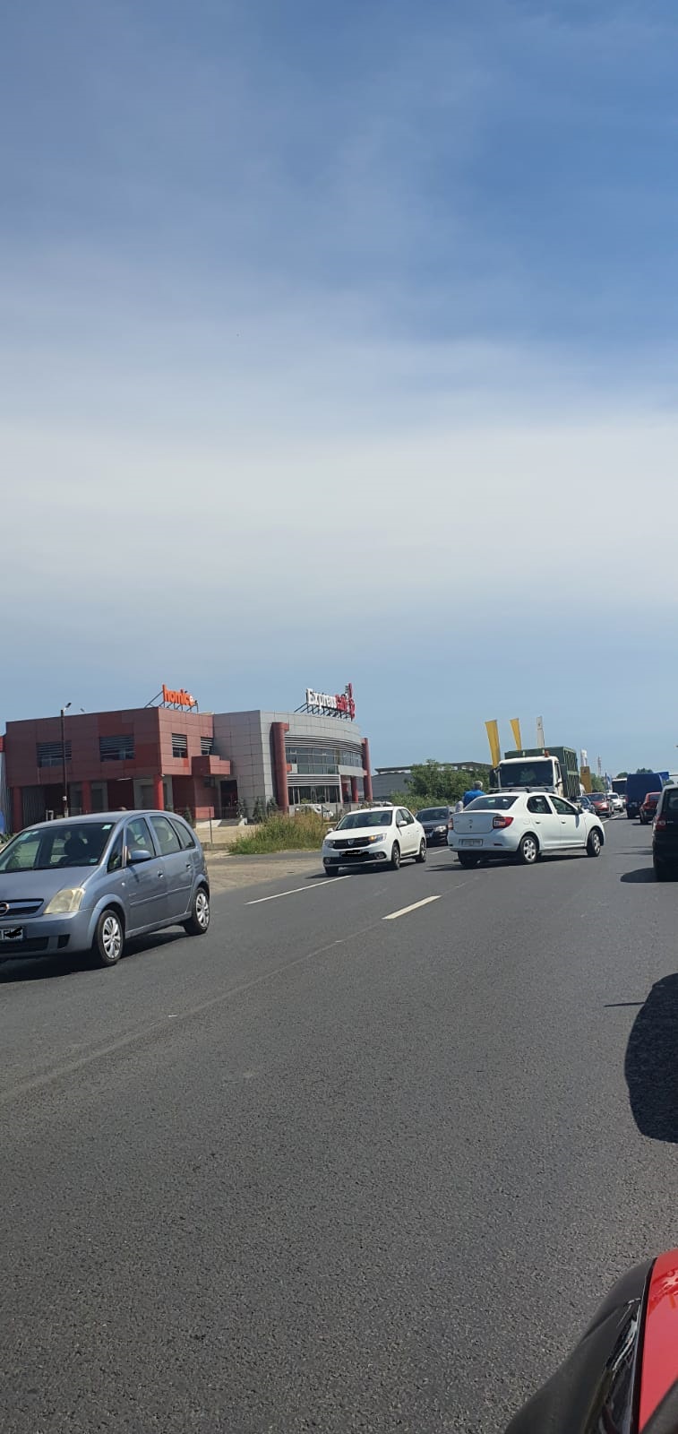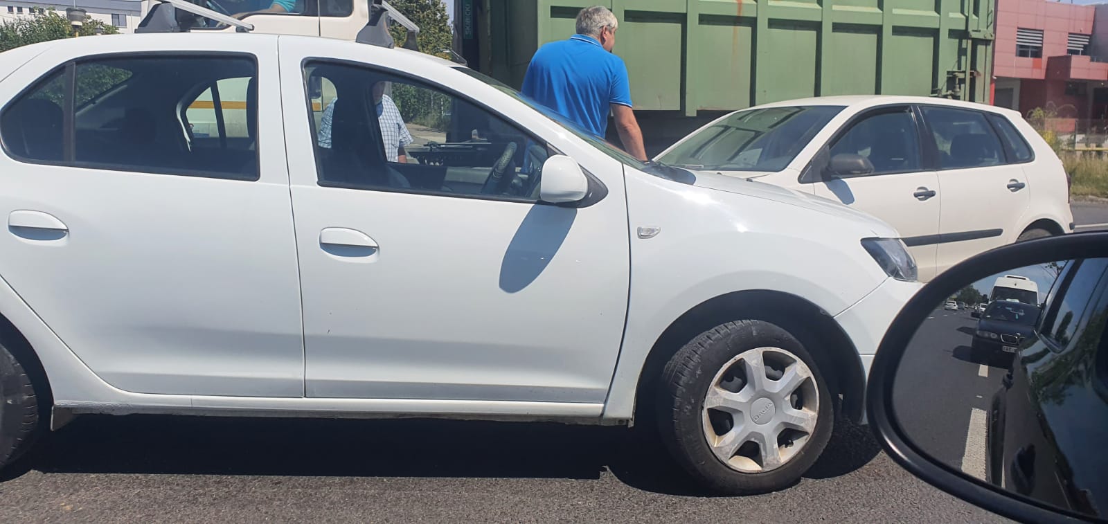 Doi șoferi „s-au întâlnit” în mijlocul străzii. Trafic înregunat E583