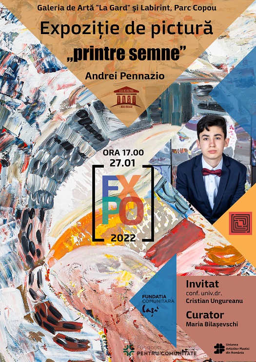 Ieșenii care apreciază arta sunt invitați la o nouă expoziție de pictură, care va fi deschisă pe 27 ianuarie, la ora 17:00, la Casa de Cultură „Mihai Ursachi”. În galeriile „Labirint” și „La Gard” vor fi expuse lucrări semnate un adolescent care promite mult – Andrei Pennazio. Cu multiple prezențe pe simezele naționale și internaționale, el este elev în clasa a XI-a la Colegiul de Artă „Octav Bancilă” Iași.