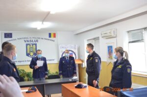 Cei 28 de tineri care au fost repartizați la structurile Inspectoratului Teritorial al Poliţiei de Frontieră Iaşi, pentru executarea stagiului de practică profesională, au rostit la unison :