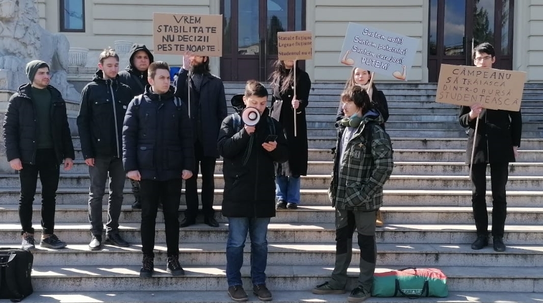 nemulțumiți de modul cum Ministerul Educației a optat brusc trecerea forțată la învățământul față în față de la cursurile online. Studenții au protestat și la adresa forului de învățământ superior din Iași.