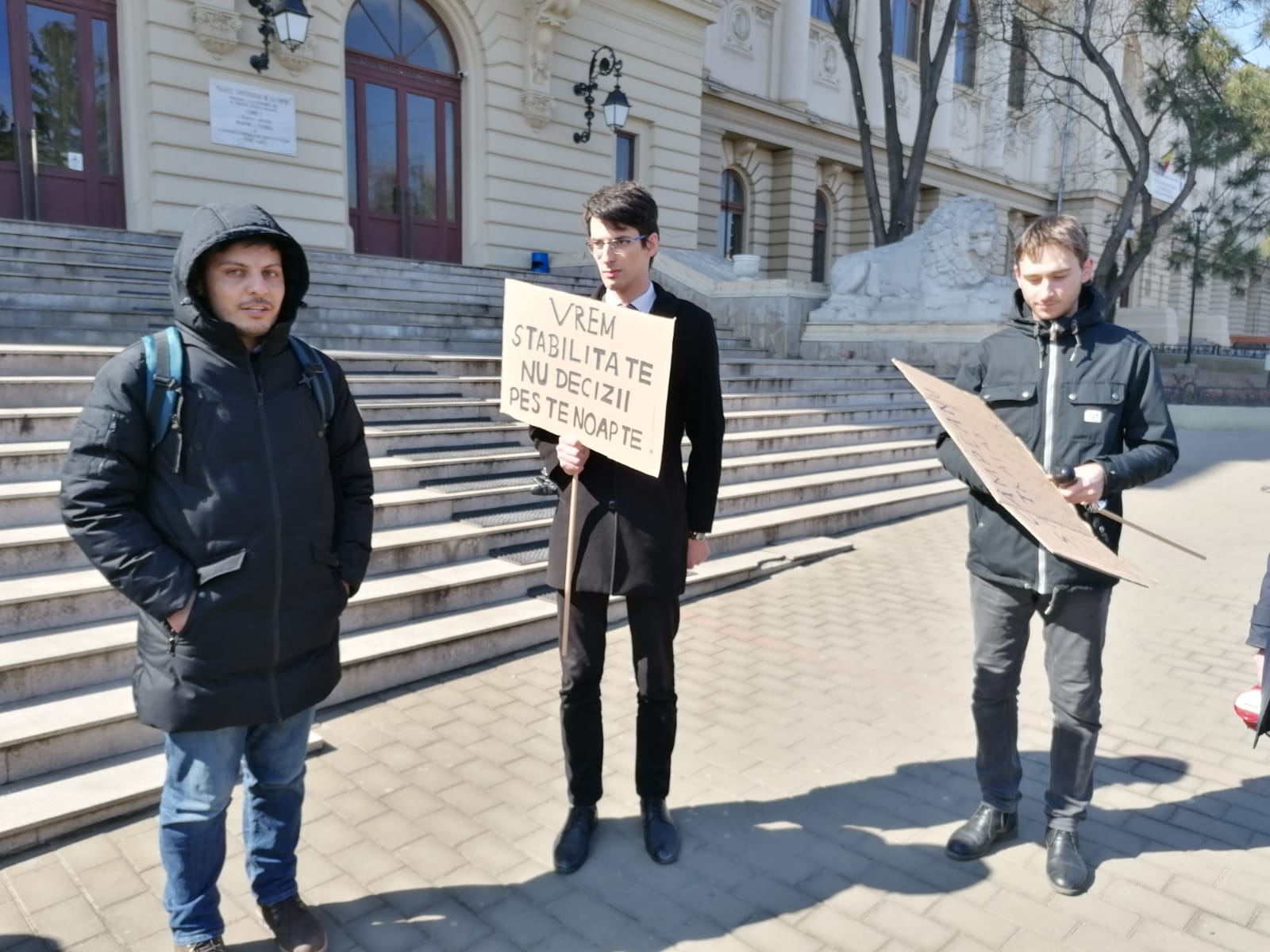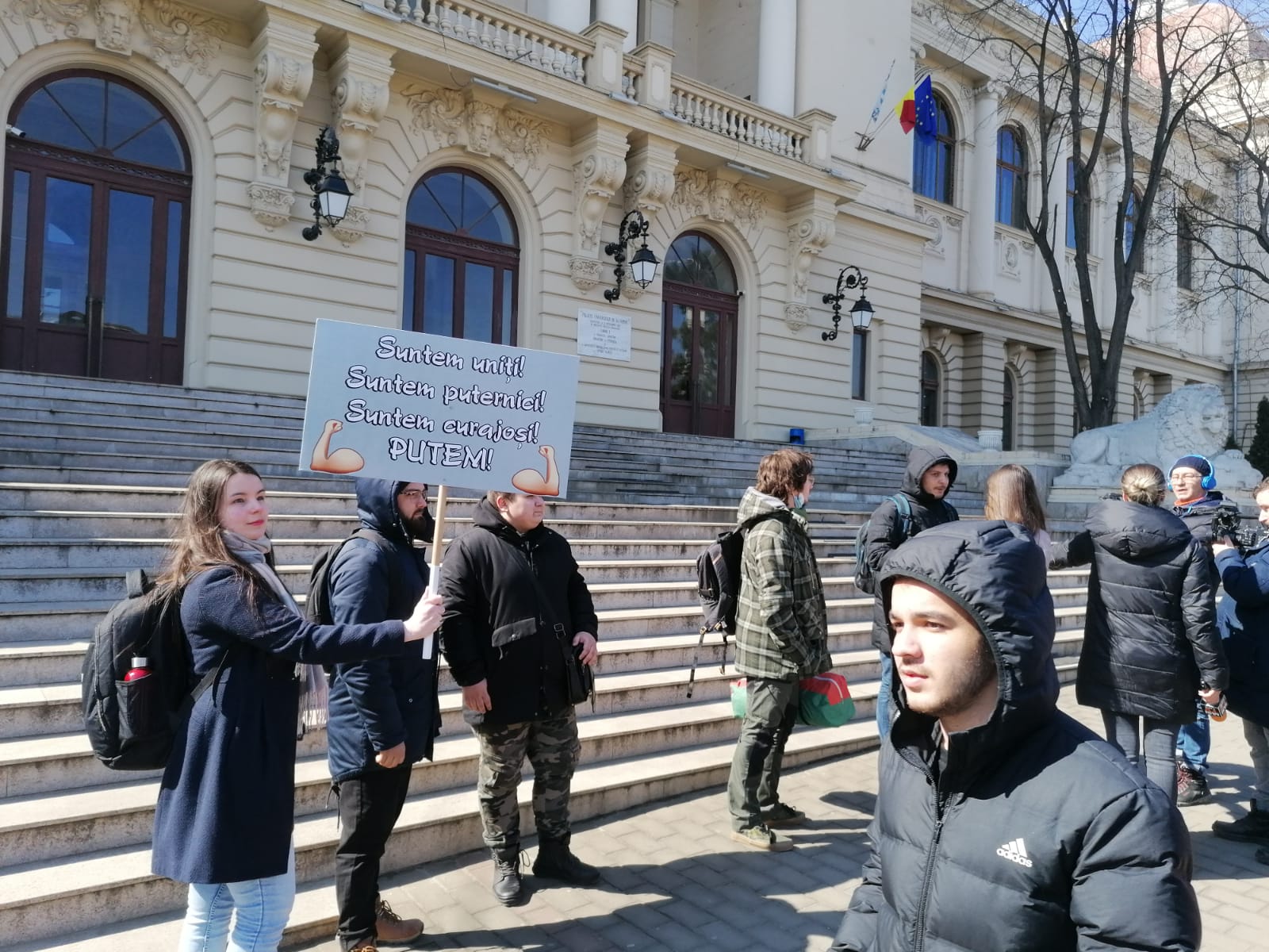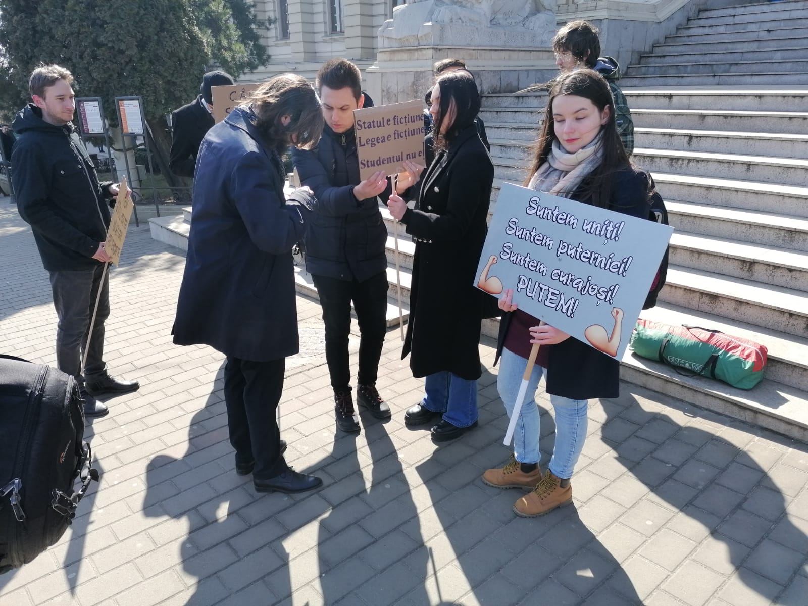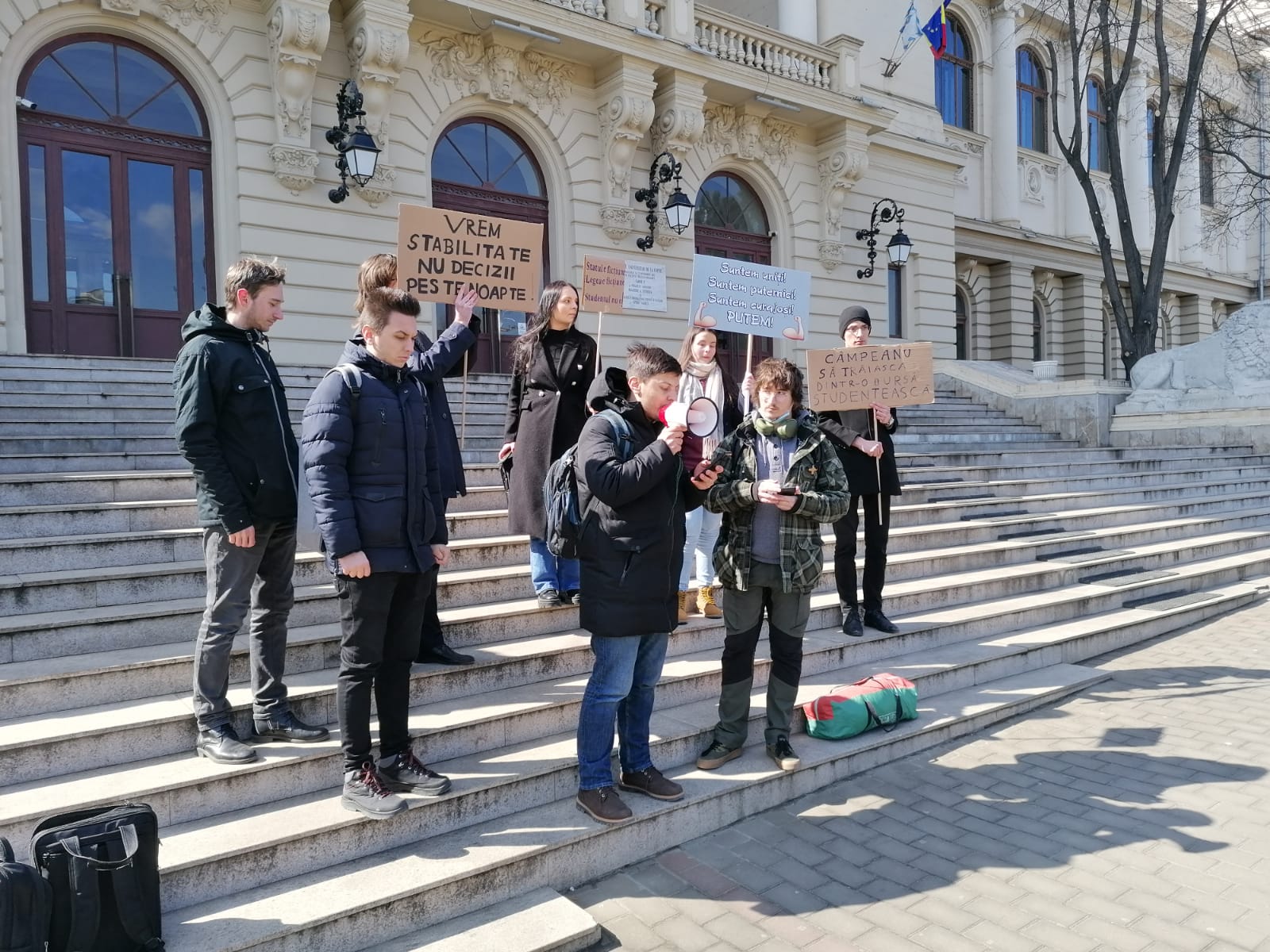 Protest inedit în fața Universității Alexandru Ioan Cuza din Iași. Un grup de studenți din cadrul instituției de învățământ superior a orfanizat un protest pe scările din fața Corpului A din Copou,