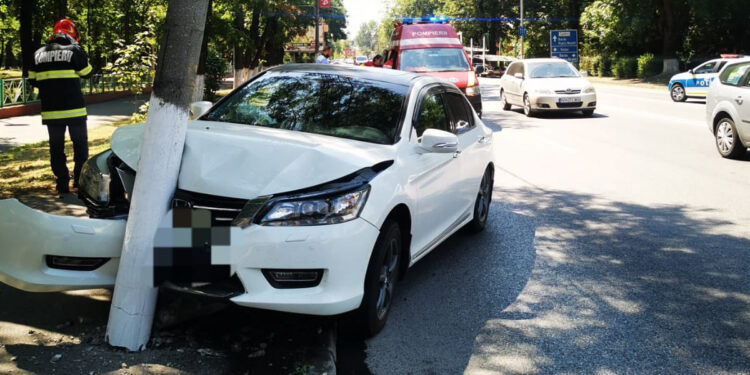 În accidentul rutier a fost implicat un autoturism care a intrat într-un stâlp de iliminat stradal.
