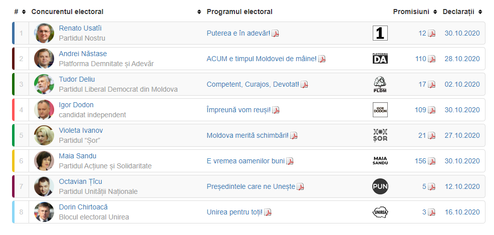 Mai multe detalii despre fiecare candidat, le găsiți la : Alegeri.MD