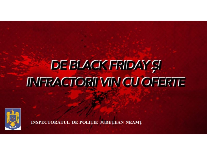 În timp ce consumatorii caută chilipiruri, cadouri pentru cei dragi sau poate doar doresc să evite aglomerațiile din magazine, infractorii văd acest lucru ca pe o oportunitate de a păcăli oamenii cu promisiunea unor oferte și a unor economii mari de bani, oferind oportunități ”speciale” sau prezentând ”oferte-bombă” în mediul online.