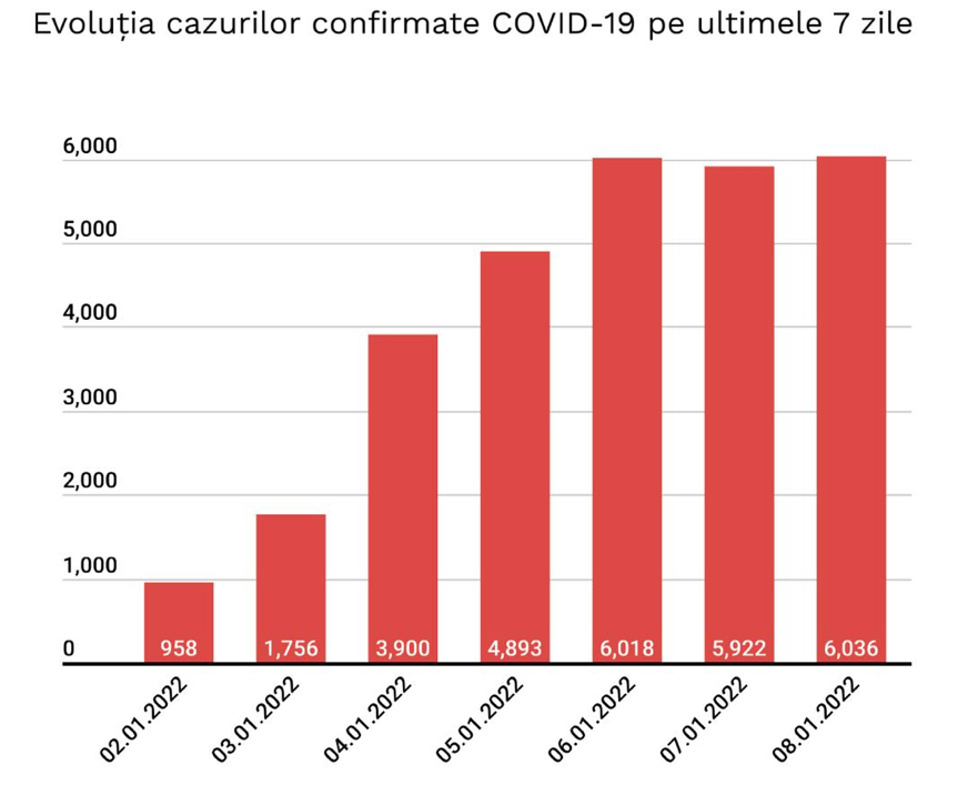 În perioada 1 – 3 ianuarie, cazurile au fost sub 2000 / zi, dar brusc au sărit de 3000, 4000 și 6000 de cazuri noi confirmate covid-19.