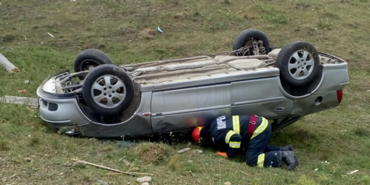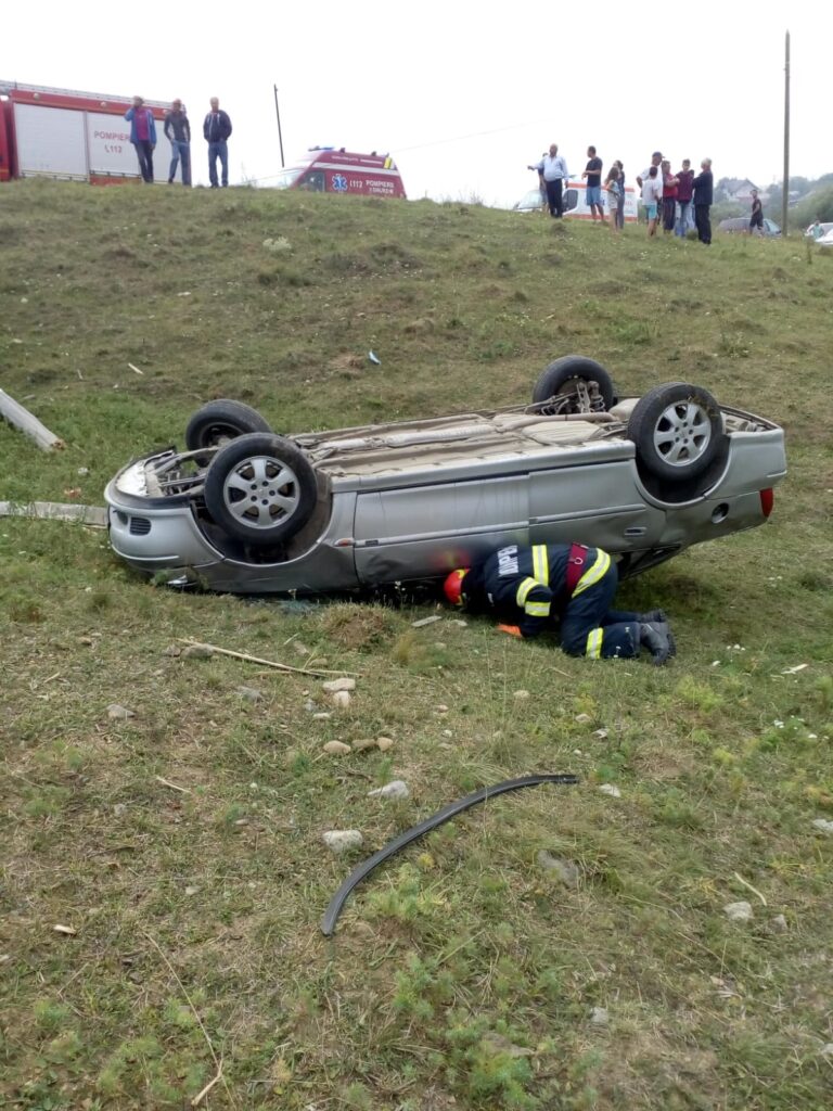 Din primele informații primite reiese că un autoturism s-a răsturnat în urma unui accident rutier.