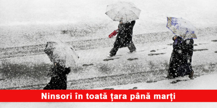Administrația Națională de Meteorologie (ANM) a emis o avertizare de precipitații predominant sub formă de ninsoare în toată țară începând de azi de la ora 14:00.