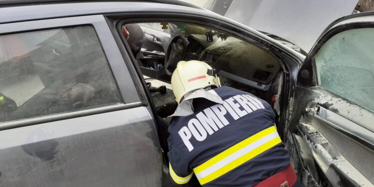 Bordul unui autoturism a luat foc de la un scurtcircuit