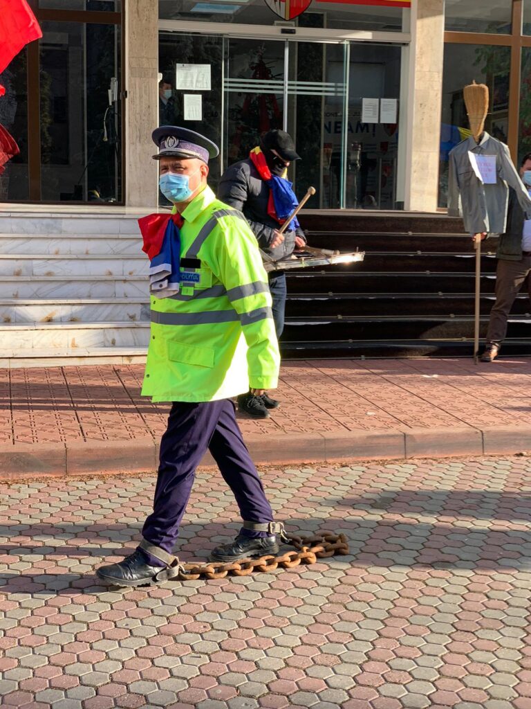 Foto: Sindicatul Europol – foto : în față la Consiliul Județean Neamț