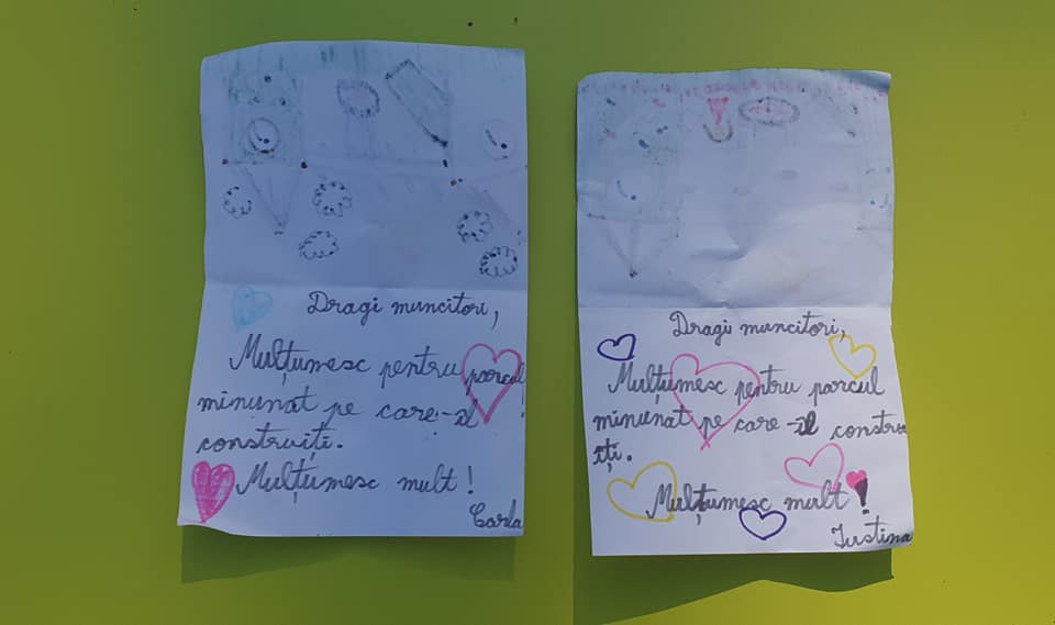 Conform viceprimarului Marius Irimia, copii au mulțumit prin scrisori dedicate muncitorilor, care lucrau la această construcție.