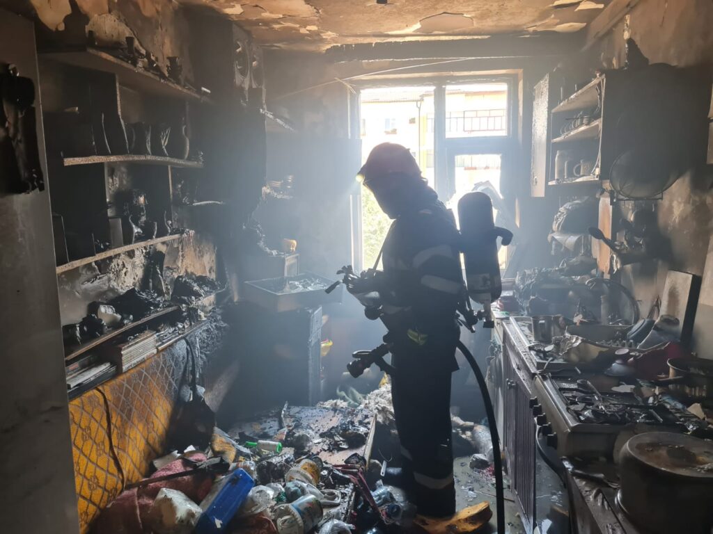 Un aragaz lăsat nesupravegehat, a provocat un incendiu uriaș