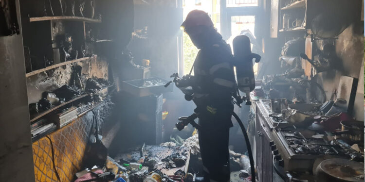 Incendiu izbucnit din cauza unui scurtcircuit, în bucătăria unui apartament din Piatra Neamț