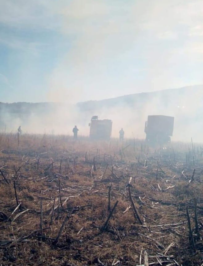 Prin apel la 112, în jurul orei 14:11, pompierii au fost solicitați să intervină pentru stingerea unui incendiu produs la un lan de porumb ce a fost treierat din comuna Bozieni.