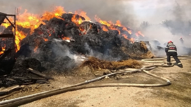 Incendiu puternic la un depozit de furaje