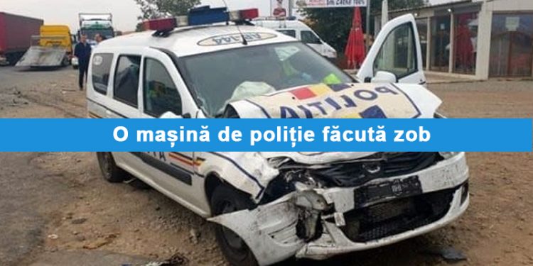 În urma accidentului rutier, autospeciala de poliție a fost grav avariată.
