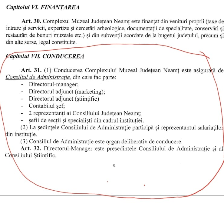 Complexul Muzeal Național Neamț este în structura administrativă a Consiliului Județean Neamț. În echipa de conducere a instituției, putem observa o echipă care nu face NIMIC pentru promovarea culturii.