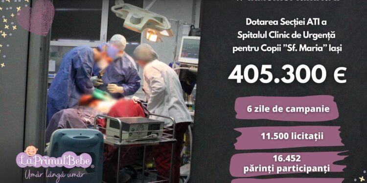 Asociația La Primul Bebe a strâns 405.300€ pentru secția ATI a Spitalului de Urgență pentru Copii ”Sfânta Maria” din Iași
