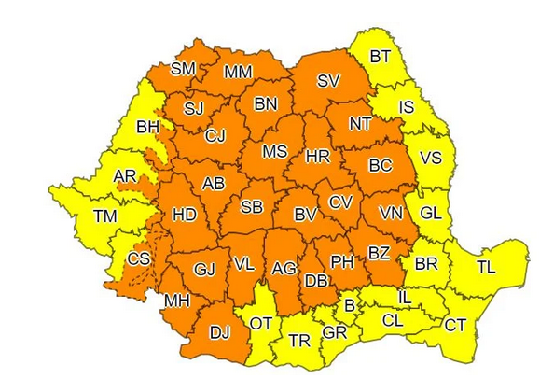 Totodată, meteorologii au informat că în intervalul 26 septembrie, ora 11:00 – 27 septembrie, ora 03:00 va fi cod portocaliu de ploi abundente și instabilitate atmosferică temporar accentuată în Maramureș, Transilvania, local în Moldova și în zona de munte.