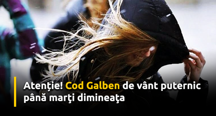 Zone din 22 de judeţe vor intra de luni dimineaţa sub un Cod galben de intensificări ale vântului, care vor putea depăşi la rafale 90 – 120 km/h, la altitudini de peste 1700 de metri, iar în restul teritoriului de 55 – 65 km/h, conform unei atenţionări emise duminică de Administraţia Naţională de Meteorologie (ANM).