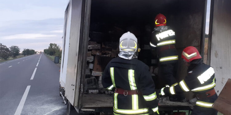 Incendiul a fost localizat și lichidat în limitele găsite. Au ars o parte din coletele aflate în interiorul autoutilitarei.