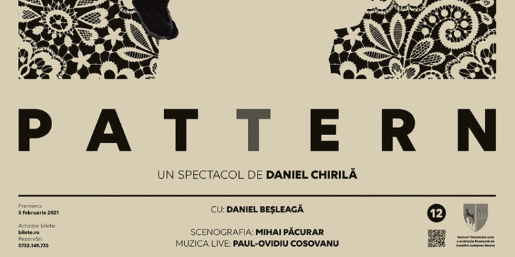 Teatrul Tineretului anunță cea de-a patra premieră a stagiunii: „Pattern“, un spectacol de Daniel Chirilă, cu actorul Daniel Beșleagă, scenografia: Mihai Păcurar, muzica live: Paul-Ovidiu Cosovanu.