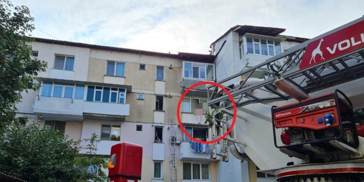 Persoană blocată pe acoperișul unui balcon al unui bloc din Piatra Neamț