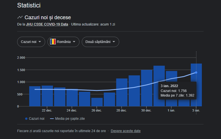 În urmă cu mai multe zile, șeful Centrului Național de Supraveghere și Control al Bolilor Transmisibile din cadrul Institutului de Sănătate Publică, Adriana Pistol, a declarat că este posibil ca vârful valului 5 să se înregistreze într-un timp mai scurt decât în valul anterior, cu peste 25.000 de cazuri pe zi.