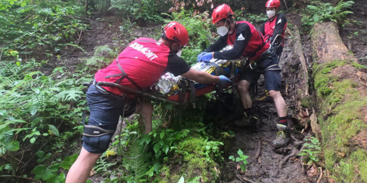 Ieri, echipa Salvamont Neamț, a intervenit pe cod roșu de precipitații pentru acordarea primului ajutor și transportul unui turist cu traumatism de membru inferior. Turistul accidentat se află împreună cu un grup format din 5 adulți și 6 copii pe traseul care coboară de la Cascada Duruitoarea spre Stațiunea Durău.