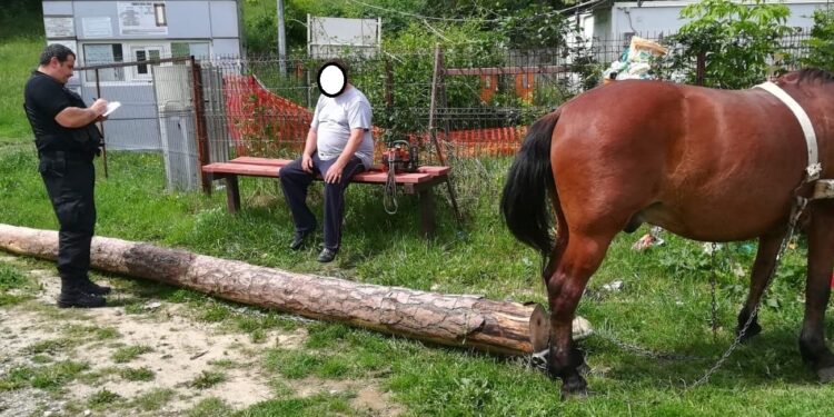 La fața locului a fost chemat un echipaj al Biroului Ordine Publică – Poliția Locală Piatra Neamț care a constatat că persoana în vârstă de 53 de ani, din Piatra Neamț, tăiase ilegal un arbore din fondul forestier de pe Dealul Cozla și încerca să-l transporte la domiciliu, cu ajutorul unei cabaline.