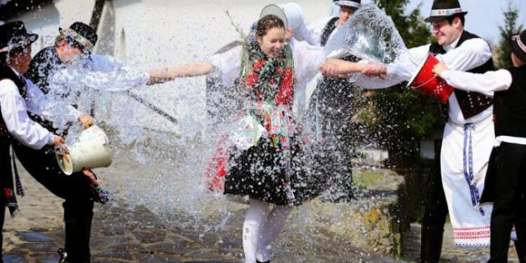Un alt obicei presupune stropitul cu apă, în amintirea readucerii la viaţă a fetei de evreu, care a leşinat la aflarea veştii învierii lui Iisus.