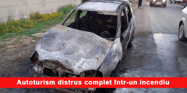 Autoturism făcut scrum în urma unui incendiu