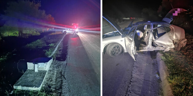 Un autoturism, în care se aflau patru persoane, a părăsit partea carosabilă și a intrat într-un cap de pod.