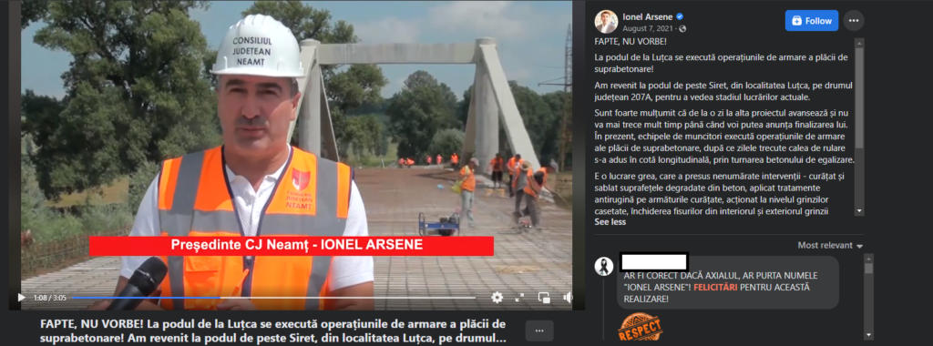 În urma cu aproape 1 an, acest pod a fost reabilitat de Ionel Arsene, președinte CJ Neamț.