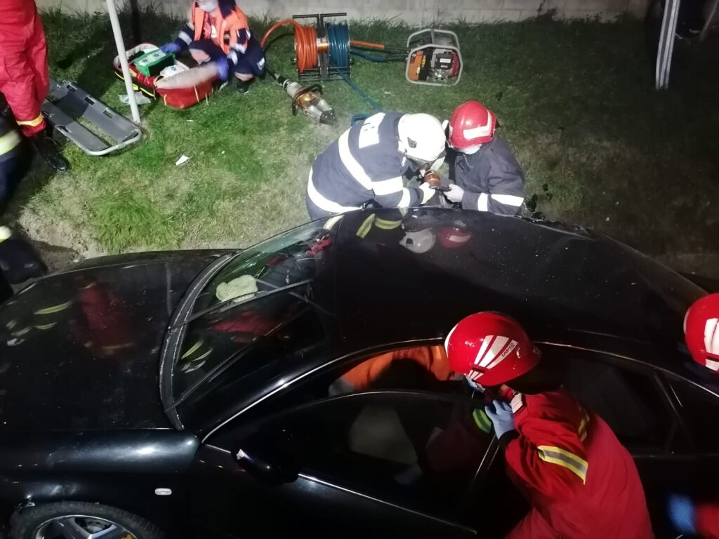 Pompierii au extras victima încarcerată, șoferul autoturismului, în stare de inconștiență. Aceasta a fost preluat de echipajul de la SAJ și transportat la spital.