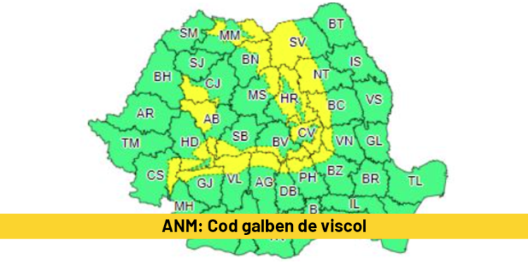 Administraţia Naţională de Meteorologie (ANM) a emis, vineri, o atenţionare Cod galben de viscol, ce vizează zonele montane din 21 de judeţe, până sâmbătă dimineaţa.