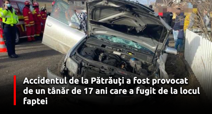S-a stabilit că persoana care a condus autoturismul implicat în accident este un tânăr în vârstă de 17 ani, din Pătrăuţi, şi nu posedă carnet de conducere.