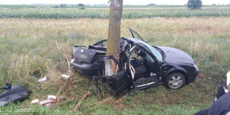 Potrivit purtătorului de cuvânt al Inspectoratului pentru Situații de Urgență Suceava, Alin Găleată, duminică, 19 iulie, o persoană a decedat și alta a ajuns la spital cu răni grave după ce autoturismul în care se aflau a intrat într-un copac.