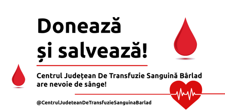 APEL IMPORTANT! Centrul Județean De Transfuzie Sanguină Bârlad are nevoie de donatori de sânge