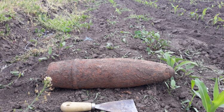 Element de muniţie rămas neexplodat, în localitatea Valea lui Darie, comuna Roșiești, Vaslui