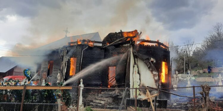Potrivit sursei citate, biserica, cu o înălţime de aproximativ 15 metri şi structură de lemn, a ars în totalitate.